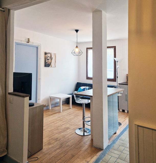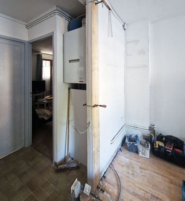Dans cet immeuble datant des années 1960, la cuisine était très étroite, et le salon était isolé entre 3 chambres. Nous avons redistribué les pièces afin de transformer la chambre attenante à la cuisine en salon, et créer ainsi un grand espace salon sur cuisine ouverte. L'ancien salon a été transfomé en chambre. pour celà nous avons abbattu une cloison et créé une ouverture pour installer une porte. Ces transformations ont rendu cet appartement beaucoup plus fonctionnel et agréable à vivre, et ont donné de la valeur au bien.